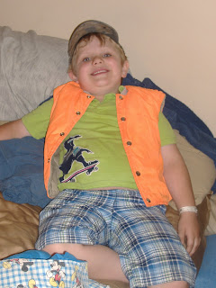 Here is Ethan looking like Larry the Cable Guy. I found my old vest from deer hunting at my parents house. Ethan wanted to ware it all over the place. He just looks so funny in this outfit.